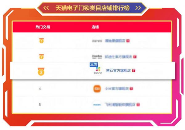 萤石智能门锁同样取得了亮眼的成绩。据天猫生意参谋数据显示,6月16日前15分钟,萤石天猫平台指纹锁销售额增长超300%+,6月18日0点至10点,萤石品牌跻身电子门锁类目店铺排行榜top3。