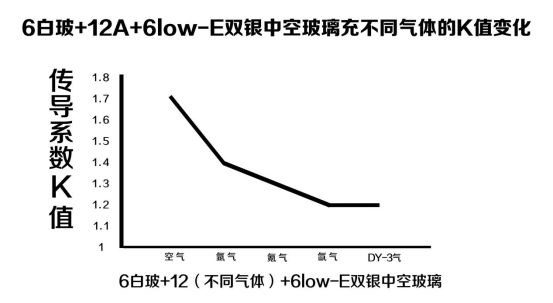 表:双钢化中空玻璃充各类同气体的K值(传热系数)变化