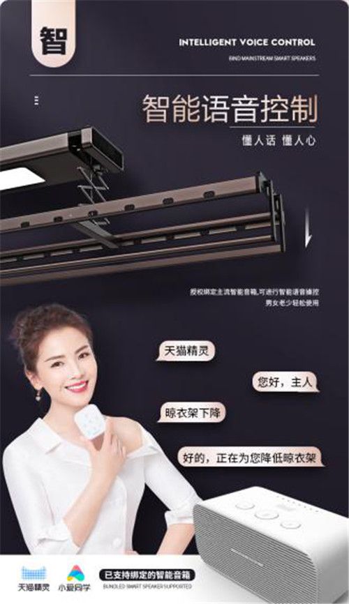 都说细节才能体现产品的用心,这款晾衣机的语音控制功能,真正做到了智能居家的便捷服务,一声呼唤“天猫精灵,晾衣架下降……”,就可以隔空控制晾衣机。对于老人,这款晾衣机是贴心好帮手,对于小朋友,这款晾衣机让做家务变得方便又好玩。