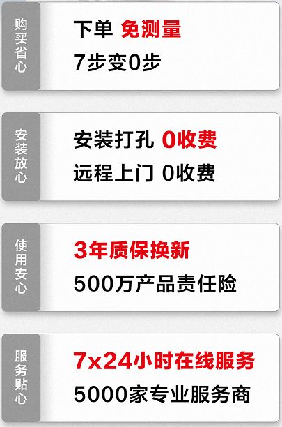 针对智能锁用户售前购买和售后安装流程复杂的痛点,TCL也给出了行业标杆级别的解决方案:即无需测量,直接下单——购买省心;安装打孔0收费、远程上门0收费——安装放心;产品过硬,3年质保换新、500万产品责任险——使用安心;7*24小时在线——服务贴心。