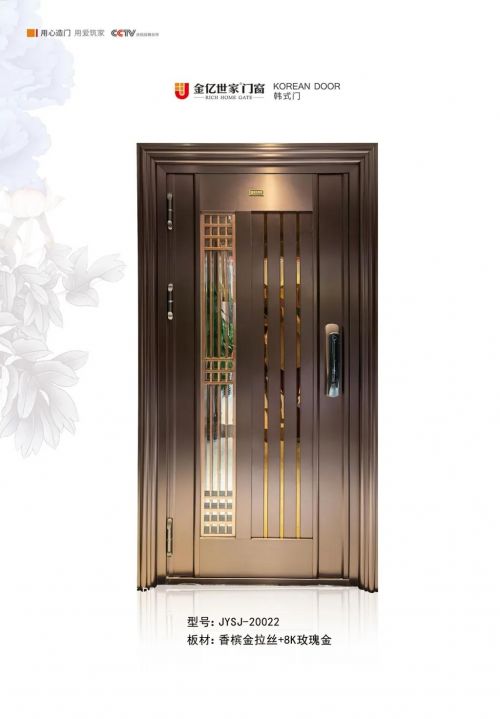 中华文化源远流长,历久弥香,祖国的日益强大,更加深人们对中式家居的热爱,新中式风格不仅是文化载体,也是精神情结的寄托。佛山不锈钢门窗厂家金亿世家于传承中创新,赋予中式以新时代的气息,在经济全面复苏的2021再度推出融合轻奢风格与中式文化的新中式入户门,把新中式的审美进一步升华。