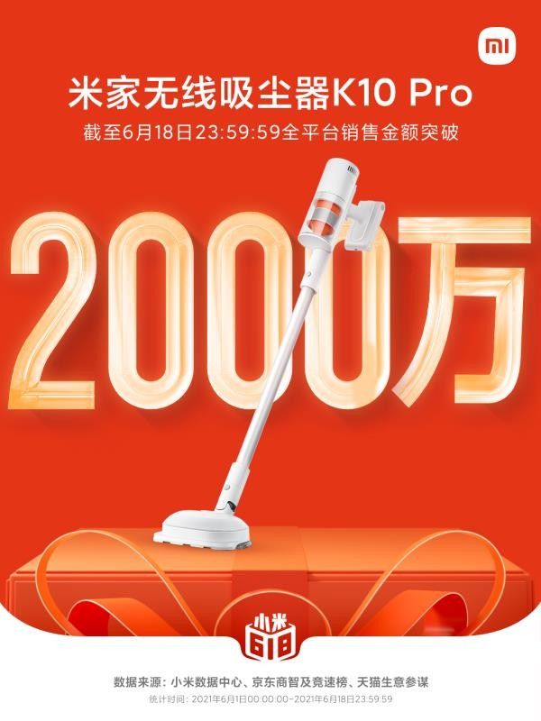 截至6月18日23:59:59点,凭借高性能、高颜值及618钜惠价格,米家无线吸尘器K10 Pro销量销额双突破,全平台销售金额突破2000万,共计销量超12500台!
