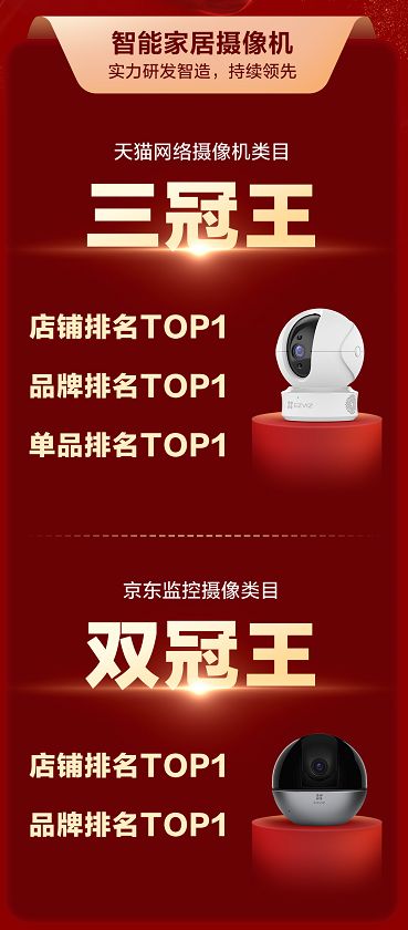智能家居摄像机作为萤石旗下的王牌品类,销量多年持续领先,此次618大促自然也有着高光表现。据天猫官方数据显示,618期间,萤石稳坐天猫网络摄像机类目店铺、品牌、单品销售额排名榜一,并且揽括了京东监控摄像类目品牌及店铺销售额TOP1。