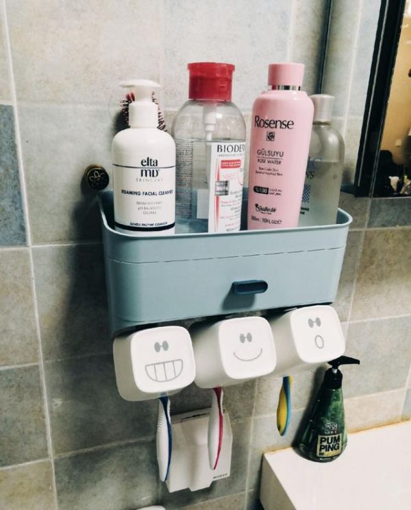 这种牙刷置物架可以满足你所有的需求,将洗漱用品都可以整齐地放在上面,大大减少了使用空间,看着也十分美观,最重要的是沥干的设计能避免滋生大量细菌。