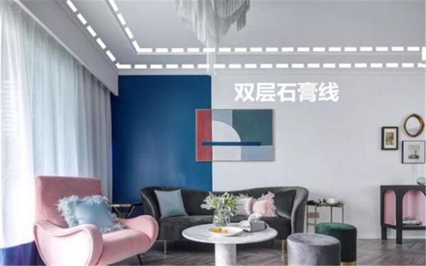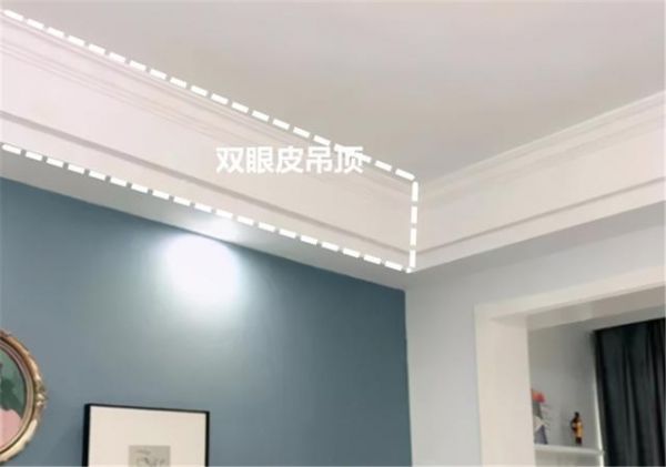 双眼皮吊顶顾名思义,用双层石膏板做成垂直吊顶,并让两者之间存在3-5cm高度差,形成双眼皮样式。