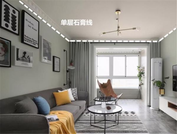 还有更简洁的方式是,直接沿着房顶走一圈石膏线,不占空间又省事儿。尤其适合层高低于2.5米的房子。