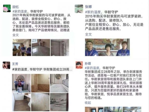 从1993年到2021年,28年家居行业服务领域的探索与深耕,让华耐家居一跃成为家居服务领域的头部企业。为进一步提升服务质量,在今年华耐家居成立28周年之际,在全国范围内特别举行“家的温度,华耐守护”——华耐到家服务节活动,14个销区,34多个城市分公司高管亲自将服务与关怀送到客户家里,更收获了提升服务的宝贵意见。