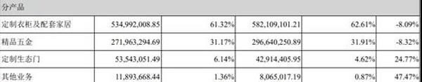 在主营产品中,定制衣柜及配套家居和精品五金是顶固集创的主要收入来源。