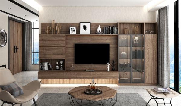 同时对室内空间进行科学分区及智能化设计,打造通顶式储物柜,充分利用垂直空间,让收纳功能达到最大化。创新运用全友的多功能墙面家居系统,在丰富了室内空间功能性的同时,也增加了墙面的层次感。