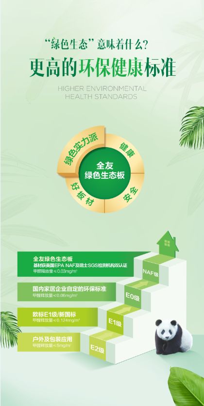 为满足消费者对健康、环保的居家生活环境的需求,全友推出“无醛添加”的绿色生态板,以尖端技术将无甲醛的MDI环保粘合剂运用在板材生产中,经专业测试,全友绿色生态板的甲醛释放含量≤0.016mg/m³,比国标E1级(甲醛释放量≤0.124mg/m³)更低。除此之外,全友还在家居产品上使用了抗菌工艺,经测试,可有效抑制大肠杆菌、金黄色葡萄球菌等多种菌种,抗菌率>99%,能为用户打造更健康的居家生活环境。