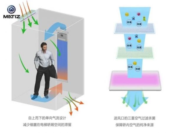 美迪斯还提供专业级医用防疫电梯,拥有“无接触式乘梯+轿内单向气流设计+进气净化+轿内空间重点消杀+安全监测+抗菌涂层”6重防护,降低病毒传播的几率,保障乘客的安全!