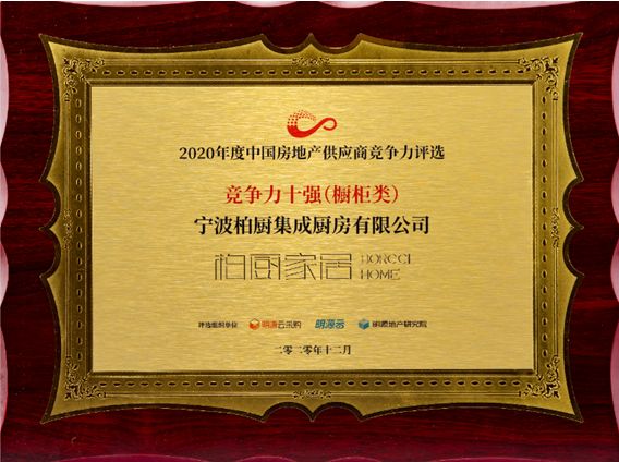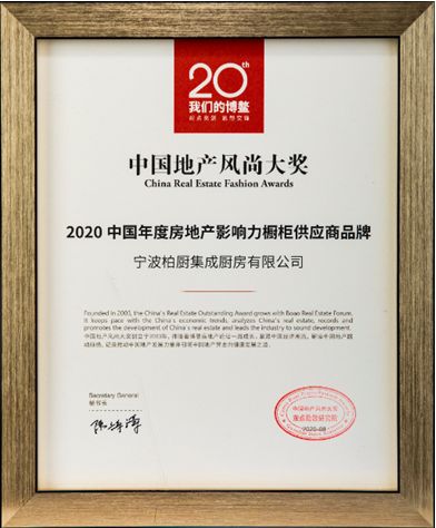 高效的交付能力是企业生产硬实力的证明。柏厨以不拖累地产交付期限,实践“一次成功交付”的服务宗旨,荣获“2020中国年度房地产影响力橱柜供应商品牌”和“2020年度中国房地产供应商竞争力十强(橱柜类)”。