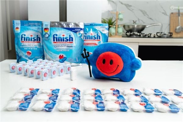 据悉,finish洗碗凝珠的设计初衷是强调“洁净美学,洗涤再升级”。使用该产品时,不需预洗,其成分中的液态强力球、活性氧、生物酶可有效瓦解重油渍、淀粉渍、蛋奶渍及其他顽固污渍,让餐具光亮如新,干燥清爽。