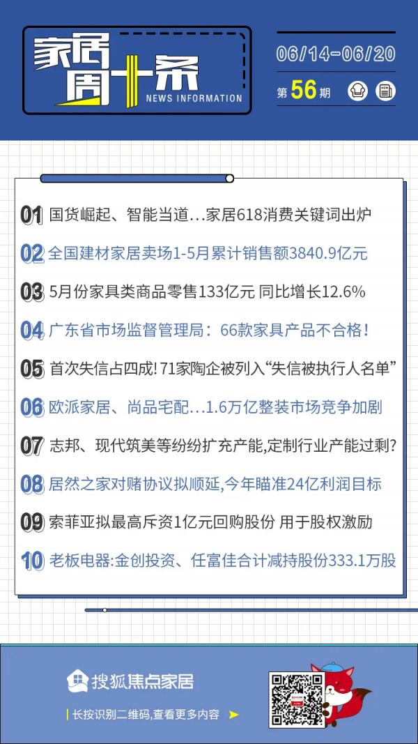 家居周十条|前5月家具零售总额618亿元、71家陶企失信…