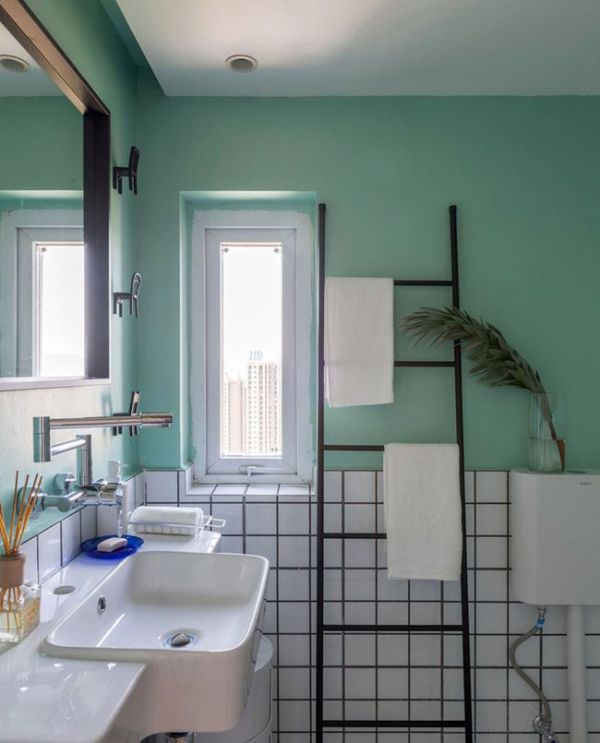 但选择这种铺贴方法前提得有一个专业的设计师设计,否则容易搭成“灾难现场”。当然,如果设计好了,你的卫生间将别具一格,独领风骚!