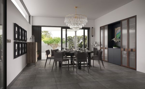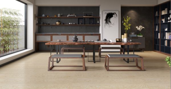 中隐家居创作灵感便来源于此,在家居场景中处处传递基于中国优秀传统思想的平淡与恬适感。室内整体风格隐藏东方的意,融合西方的形,不露声色。客厅空间内的陈列格宛如私人博物馆,多宝格中藏书阁,尽显中国传统家居风尚。器物本无华,岩板自有光,于通透格栅处顾盼生辉,若隐若现,身藏不露,心藏此间,道尽人生哲理。