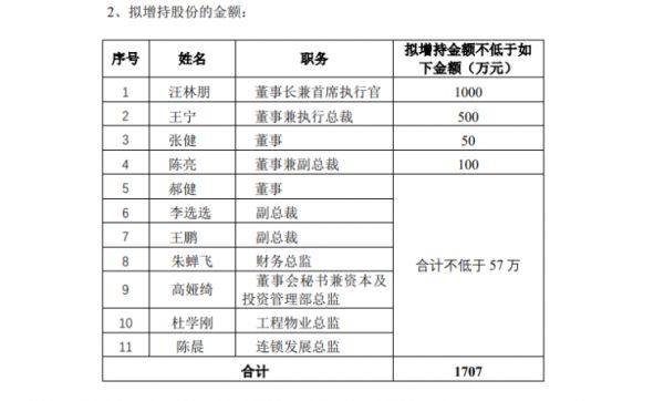 其中居然之家董事长汪林朋本人将增持公司股票合计金额不低于人民币1,000万元。