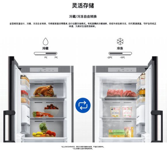 为了全面守护食物的新鲜,三星BESPOKE灵变·炫彩系列冰箱采用了全空间变温技术,可在冷藏、冷冻间自由随心转换。使用过程中,大家可以根据自身具体需求, 自行设置存储模式,无论是冷藏储鲜,抑或是生鲜冷冻,均可灵活调温。把买好的鸭货放置进去储鲜,熬夜看球时拿出即刻食用,咀嚼出来的新鲜感,有滋有味畅享欧洲杯。