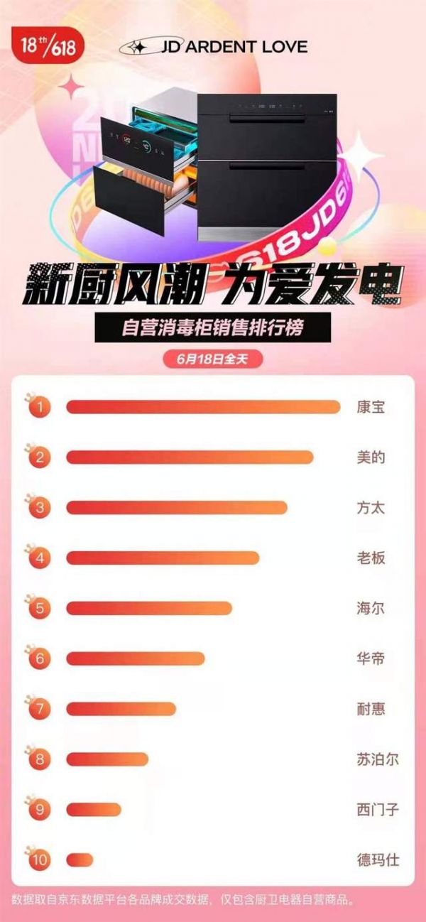 618战报:康宝消毒柜蝉联行业第一,耐惠消毒柜行业第七!