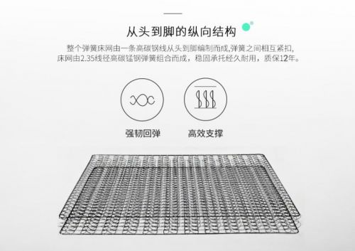 这款东宝床垫十分耐用,选用2.35线径的高碳锰钢弹簧,弹性、韧性好,给人体硬朗坚实的支撑。床网四周采用边缘加固设计,使床网更加牢固耐用,有效防止塌陷,延长床垫使用寿命。