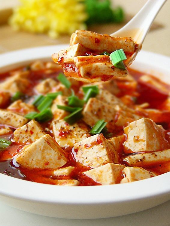 把准备好的油、姜末、肉糜、豆瓣酱、花椒粉和辣椒粉放进主锅,不需要盖上量杯,按照提示设置4分钟/ Varoma/反转/速度小勺进行拌炒。第二步插入蝴蝶棒,加入青蒜、汤、水、生抽、老抽和汆水后的卤水豆腐,设置5分钟/Varoma/速度小勺搅拌。时间到就可以盛出享用了。可以看到做出来的豆腐形状都还是好的,没有被搅碎。