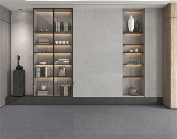 箭牌复合轻纹岩板--悉尼灰系列细腻的纹理融合蛋壳面的质感,形成立体感十足的肌理,应用于书房地面,既能营造极简感,又能让空间拥有丰富的细节,耐看耐品,大大提升书房的格调和内涵。