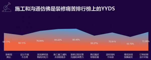 周期长、环节多、流程长、投入资金大、沟通成本高、时间成本高……“装修”二字基本可以与以上诸多痛点划上等号。《报告》显示,施工和沟通是最让消费者头疼的痛点。7成以上的装修人都遇到过工序繁琐协调困难、装修预算超支严重、出问题后多方推诿售后难、施工敷衍引发生活不便、设计师方案与呈现差距太大、家居建材与设计风格不合等麻烦,很多怕麻烦的年轻人瞬间被劝退。