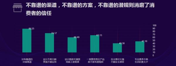 延期、扯皮、劣质,任何一项都能让消费者一生黑,具象而言,施工过程中随意增项、隐蔽工程施工敷衍了事、原辅材料选材劣质、项目负责人形同虚设、家居建材进场时间混乱、整体基装质量差、交付延期、售后甩锅扯皮相互推诿……装修流程中的任一痛点都能消磨消费者对行业的信任,继而给行业带来更大的挑战。进而,消费者对靠谱的第三方监管、权威的平台的呼声越来越强烈。