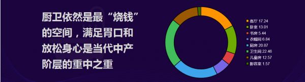 年轻消费群的家装倾向很明显,风格选择上,意式轻奢是主流,新中美简旗鼓相当;厨卫是消费者最愿意花钱的空间,他们愿意为更好的生活品质买单。数据还显示,买越大的居住空间的消费者越舍得为装修花钱,面积在200㎡以上的屋主中,愿意花75万以上装修费的消费者占比达57.69%。消费升级在家装行业体现得尤为明显,更好的生活品质成为了市场的主流需求。