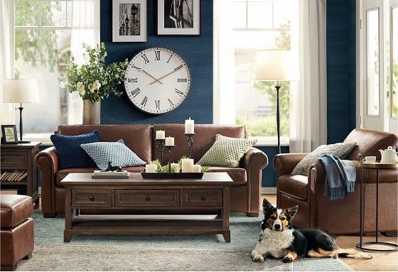 不同皮款的Barton沙发,拥有皮料的质感加成,可搭配Montclair这种深色系硬木套系,再点缀不同的装饰,复古挂钟、编织靠垫、黑白墙画、铸铁黑色灯具,展现绅士品格,百搭而精致。