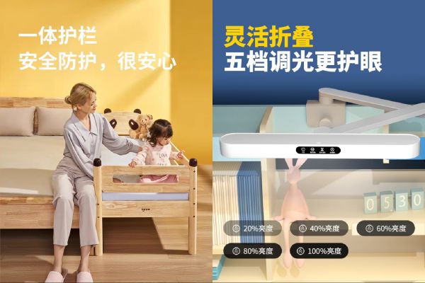 618期间,全新上线的拼接床和护眼灯,总销售额突破500万,充分满足了不同家庭在工艺美学、功能选择等多方面的需求。