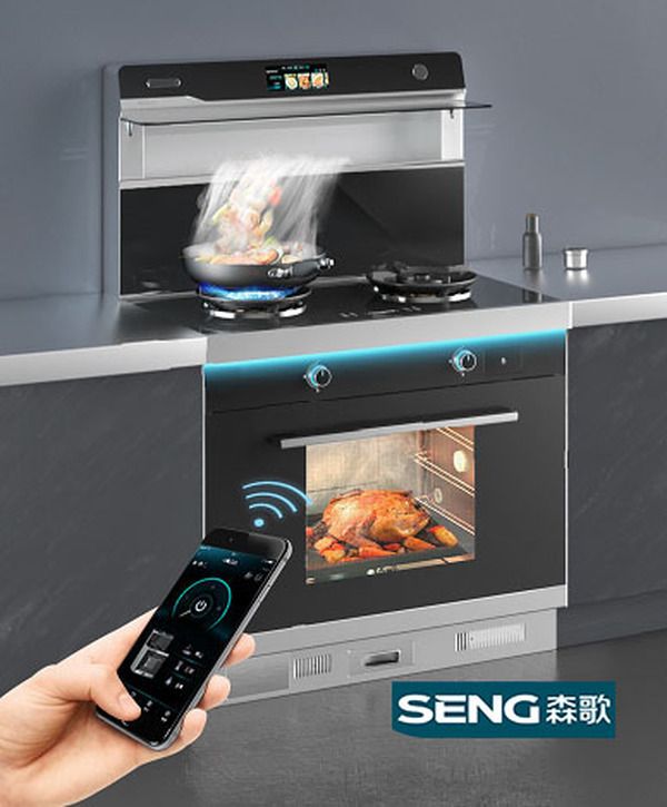 森歌最新研发并成功上市的i8智能蒸烤集成灶,懂厨房更懂你的心。森歌i8智能蒸烤集成灶摒弃传统油烟机的顶吸式设计,创新升级为侧吸下排,10~25cm的黄金控烟区的设计,能使油烟不扩散就全部吸净排出。配合变频巡航大风压,智能分配动量,智能增压,确保油烟吸净还不倒灌。高层住户使用它,也没有任何油烟烦恼。