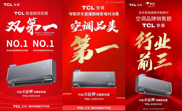 6月1日,TCL卧室新风空调以销售增速、好评率双第一霸榜京东新风空调榜单,取得6月开门红;6月3日,TCL空调夺取京东直播巅峰家电对决赛中的空调品类冠军;6月5日,TCL空调又稳居京东家电焕新榜空调品牌销售额前三;6月8日,TCL空调凭借TCL卧室新风空调拿下舒适风空调销售额、净化除菌空调销售额两大榜单的冠军,成功登上京东家电热卖榜。