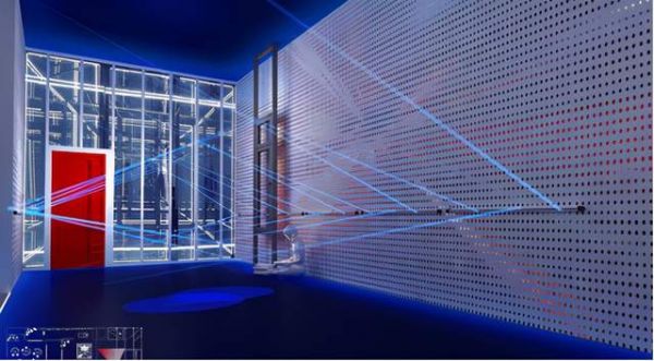 为突出“科技感”,圣堡罗展位设计风格主要以简约、时尚、高科技为主,通过材质、灯效、视觉三位一体的“科技”场景,把产品与主题空间的完美结合,营造科技、未来感。灯光与冲孔板的主要材质运用本身与空间氛围匹配适融性高,空间氛围的精致度与科技感也随之烘托;同时创新采用LED屏幕与产品的融合,延续互动的场景打造网红打卡点,届时吸引更多观众于此拍照、打卡。