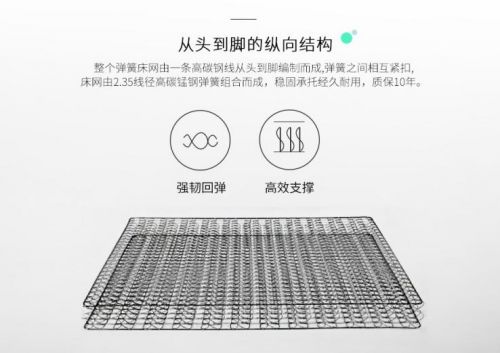 东宝床垫的舒适睡感,来源于优质材料带来的良好透气性、支撑力。床垫采用高碳锰钢连锁弹簧床网,每个弹簧经过80000次耐久性测试,2次高温热处理,2次过油防锈处理,弹性韧性好,经久耐用。