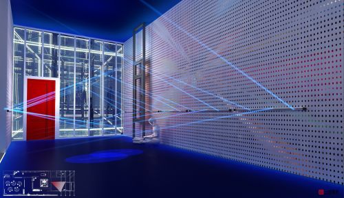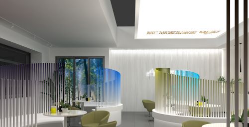 为突出“科技感”,圣堡罗展位设计风格主要以简约、时尚、高科技为主,通过材质、灯效、视觉三位一体的“科技”场景,把产品与主题空间的完美结合,营造科技、未来感。灯光与冲孔板的主要材质运用本身与空间氛围匹配适融性高,空间氛围的精致度与科技感也随之烘托;同时创新采用LED屏幕与产品的融合,延续互动的场景打造网红打卡点,届时吸引更多观众于此拍照、打卡。