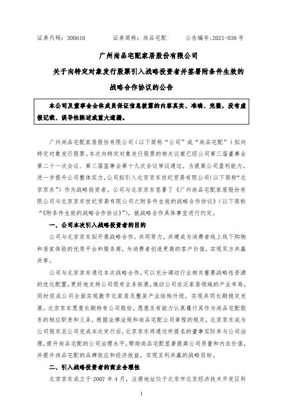 尚品宅配与北京京东将开展多维度业务合作,在品牌、流量、供应链、技术研发等板块的业务建立全面战略合作关系。尚品宅配将依托北京京东在线上流量、供应链等领域的资源沉淀,拓宽线上引流业务和供应链保障,提升现有业务,促进市场拓展,增强持续盈利能力。