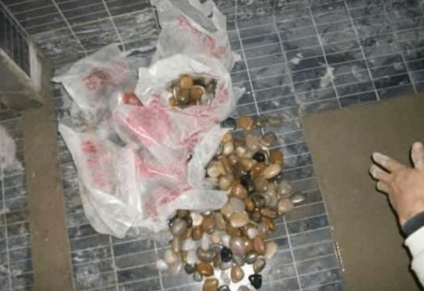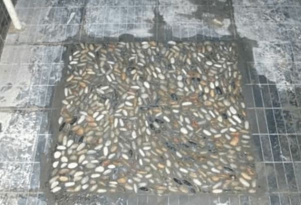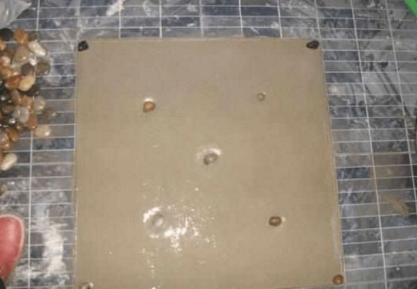 浇好水泥之后,就开始把鹅卵石一个个把它植入进去。