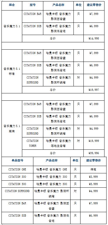 CITATION音乐魔力系列是harman/kardon倾力打造的5.1家庭影院系统,分为无线多声道与无线多房间两种模式,消费者可根据不同的音频需求选择不同的组合方式,打造适合中国家庭使用的多通道家庭影院环绕声。