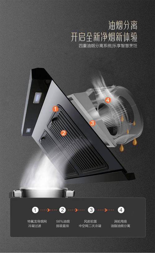 为了达到精准控烟效果,科恩6520大吸力体感触控烟机拥有900mm拢烟大宽屏,如巨幕般笼罩,快速捕获升腾油烟,形成有效油烟封锁带,迅速拢烟,将油烟“收入囊中”。四重油烟分离系统:特氟龙导烟网冷凝过滤→98%油烟拢吸直排→中空网二次冷凝→涡轮甩吸油脂油烟分离。将油烟一网打尽,还原无烟厨房助推净烟升级,开启全新净烟新体验,卡扣式隔烟屏采用特氟龙工艺技术,不沾油轻松易打理。