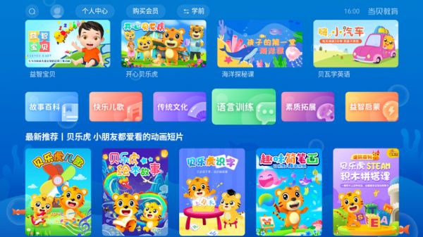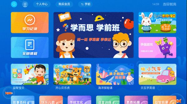 先说电视端,是因为我觉得,还是不要从小养成孩子依赖手机、平板的习惯。而且在电视上使用教育软件、课程,会更清晰直观,不用盯着手机的小屏幕。
