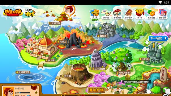 学习完每一个关卡,还有多轮的复习,目的就是加强孩子们的记忆。普通用户,只能体验第一关花果山,其他的就需要开通会员了。