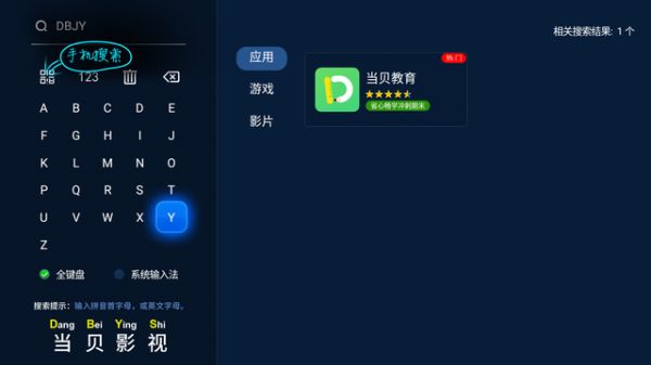 相对于当贝教育,悟空识字是一款针对性极强的软件——识字。现在是直接放在了当贝市场下的【教育】分类的推荐位。