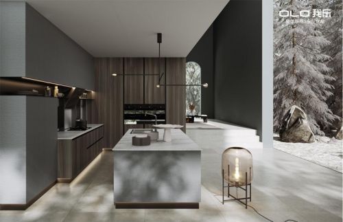 家在吾悦广场的李先生,希望自家厨房能兼顾太太的烘焙爱好和老人平日做各种中餐的需求,于是,我乐家居设计师巧妙地为他定制了一个中西分厨的莫兰迪系列整体厨柜,仅用一个移动玻璃门,就让40㎡的厨房实现隔而不断,既不影响使用又让空间美观而协调。