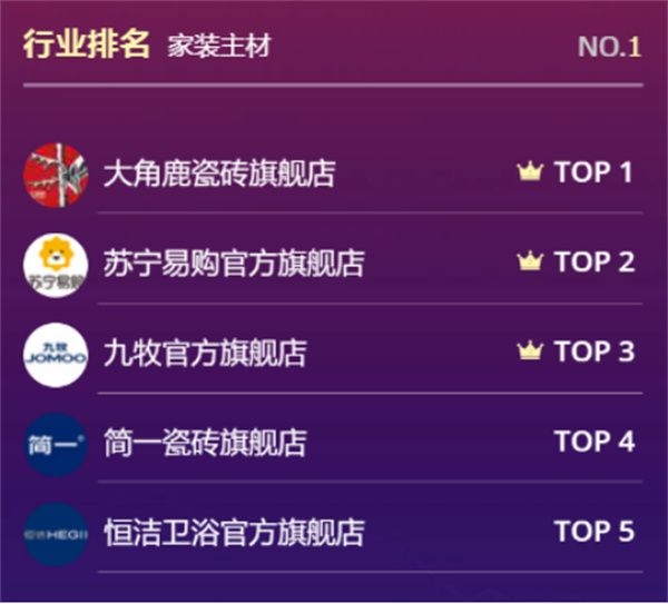 618天猫瓷砖品牌销售榜出炉,大角鹿荣登前三甲!