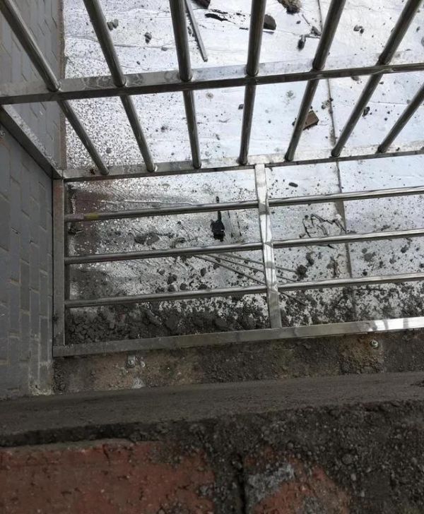 先来看看上图,大家有没有看懂是怎么回事的?没看懂的,我给你解释一下,就是说我们这栋楼的设计,楼上楼下会有一个公共的外墙位置,来安装空调外机的,也就是图中被安装上防盗窗的这个位置。