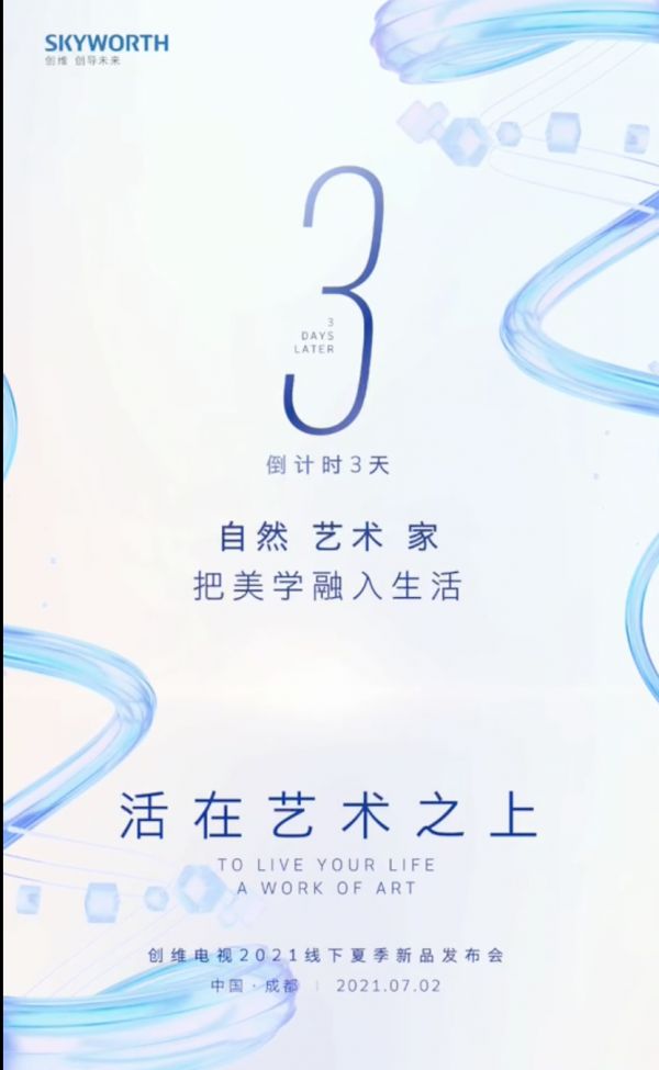 2021年7月2日,创维电视“活在艺术之上”夏季发布会即将举办。据透露,本次发布会将有两款新品和大家见面。新的“客厅美学大师”,据说将对传统文化进行时尚表达,打造具有全新美学风范的国潮新品。国货已自强,国潮正当时,本次发布会创维会带来哪些惊喜呢?让我们拭目以待。