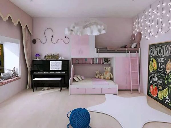 房间粉色的主色调给两位小公主营造了一个梦幻的心灵休憩之所。