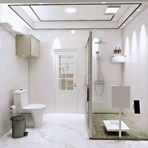 业主家居住的人口较多,因此卫生间的使用需求还是比较大的,设计了两个马桶,一个是坐便的,一个是蹲便的,方便不同生活习惯的家庭成员使用。