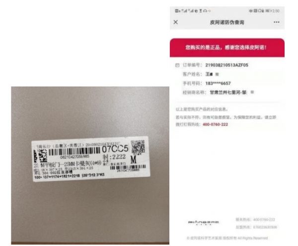 皮阿诺线上线上完善查询端口,让你快速识别产品真伪!